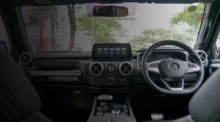 Masuk ke kokpit, mengingatkan rasa Wrangler maupun Mercedes G-Class. Posisi duduk tinggi dan tegak, mudah memantau area sekitar.